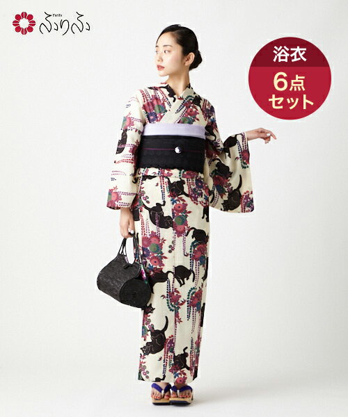 【SALE10%オフ】【WEB限定】浴衣6点セット(浴衣+半巾帯+へこ帯+帯締め+下駄+バッグ)公式 ふりふ ゆかた セット 女性 セットゆかた セット浴衣 結婚式 二次会 パーティー 夏 花火 大正ロマン レトロ 個性 かわいい 着物 きもの アンティーク 風 和柄 和 着物 きもの
