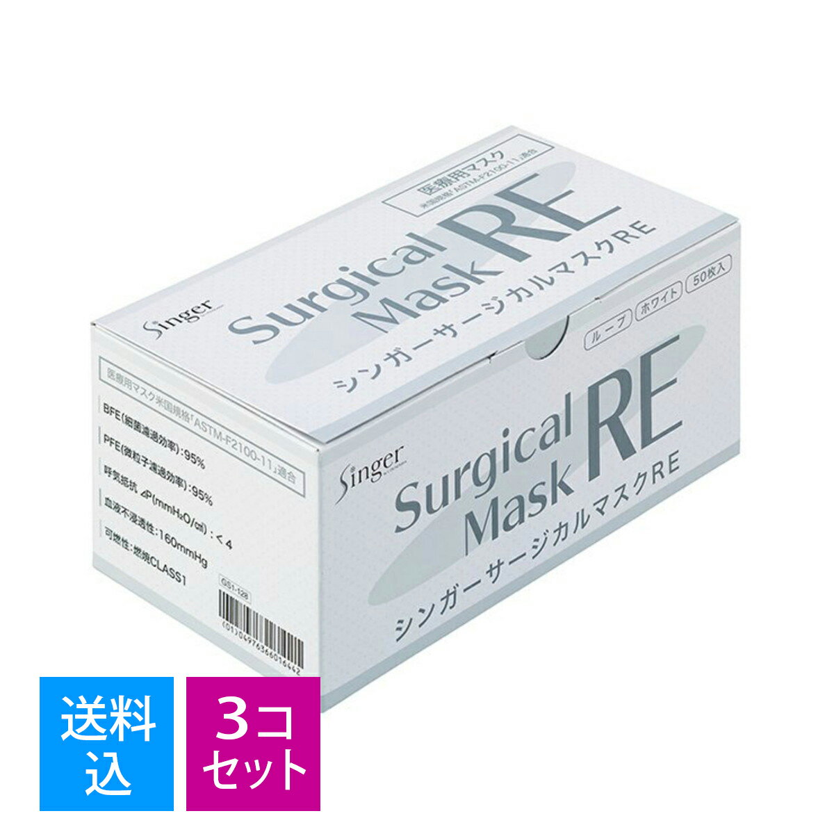 【送料込・まとめ買い×3個セット】宇都宮製作 シンガー サージカル マスク RE ホワイト 50枚入