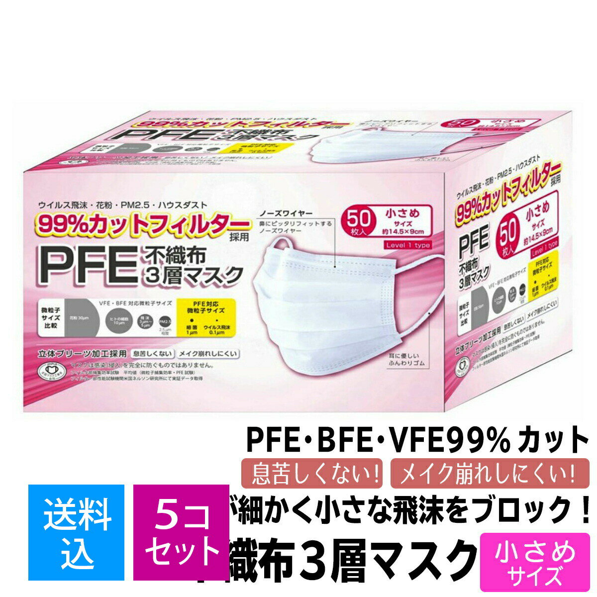 【送料込・まとめ買い×5個セット】【数量限定】富士 PFE 不織布 3層マスク 小さめサイズ 50枚入(レベル1タイプ 不織布マスク)(4944109313929)※無くなり次第終了
