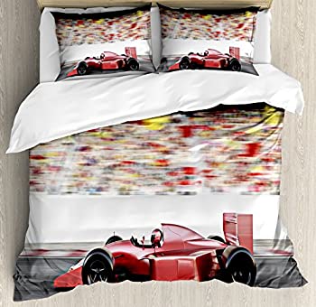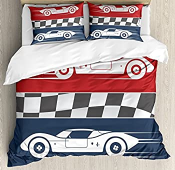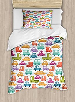 【中古】【輸入品・未使用】Cars布団カバーセットby Ambesonne、DoodleスタイルCars with鮮やかな色さまざまなタイプの車トラックバスLimousine、装飾寝具セット枕のカバー