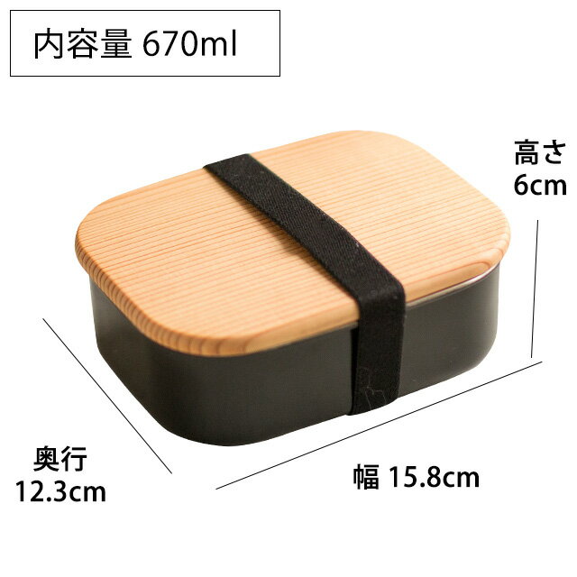 サイズ 幅 15.8cm × 奥行 12.3cm × 高さ 6cm 容量 約 670ml 重量 約 173g 素材 本体:18-8ステンレス鋼(クローム18% ニッケル8%) フタ:杉(古代杉) バンド:ゴム 生産国 日本 お弁当グッズ特集 はこちら ギフトバッグラッピングは こちら キッチン総合 ランキング