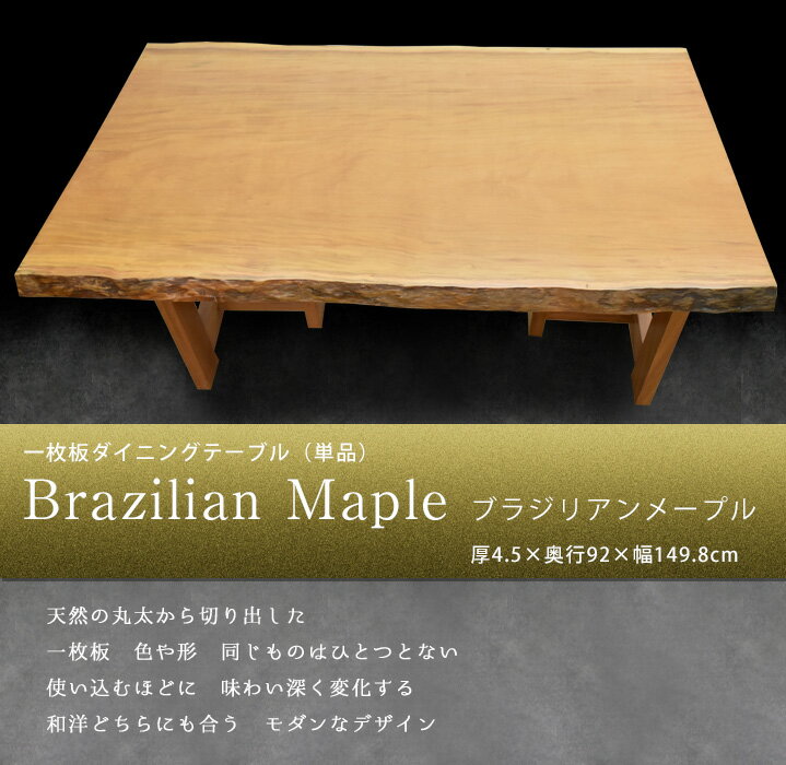 【クーポン配布中】ダイニングテーブル 座卓 W1498×D920×厚45mm 無垢一枚板 ブラジリアンメープル No.7 一点もの 完成品 ※東京・千葉・埼玉・神奈川限定 ローテーブル 耳つき天板 皮付 耳付き 天板 天然木