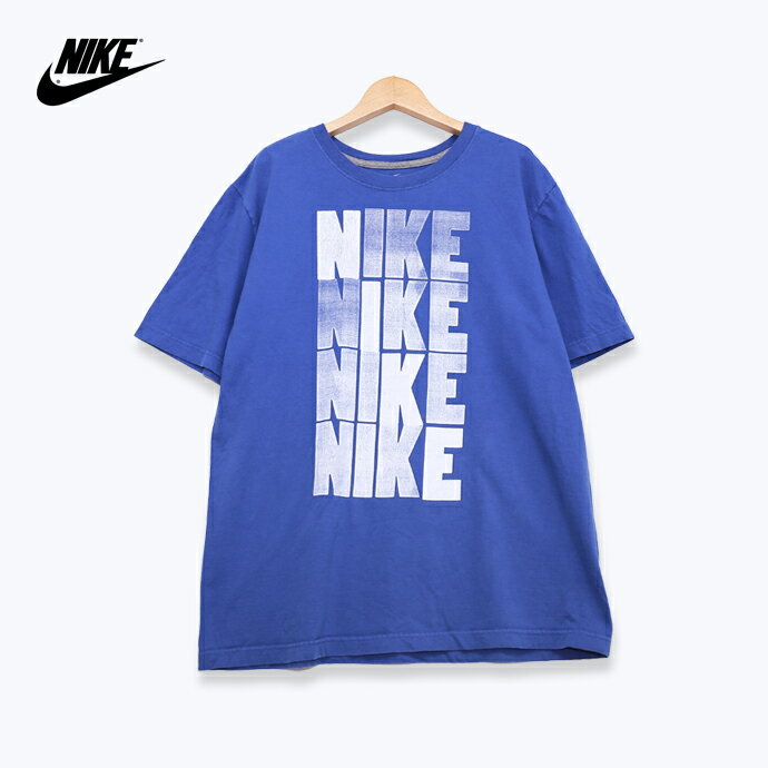 ナイキ NIKE リピートロゴ 半袖プリントTシャツ ブルー メンズ Lサイズ ユーズド 古着 t190711-7
