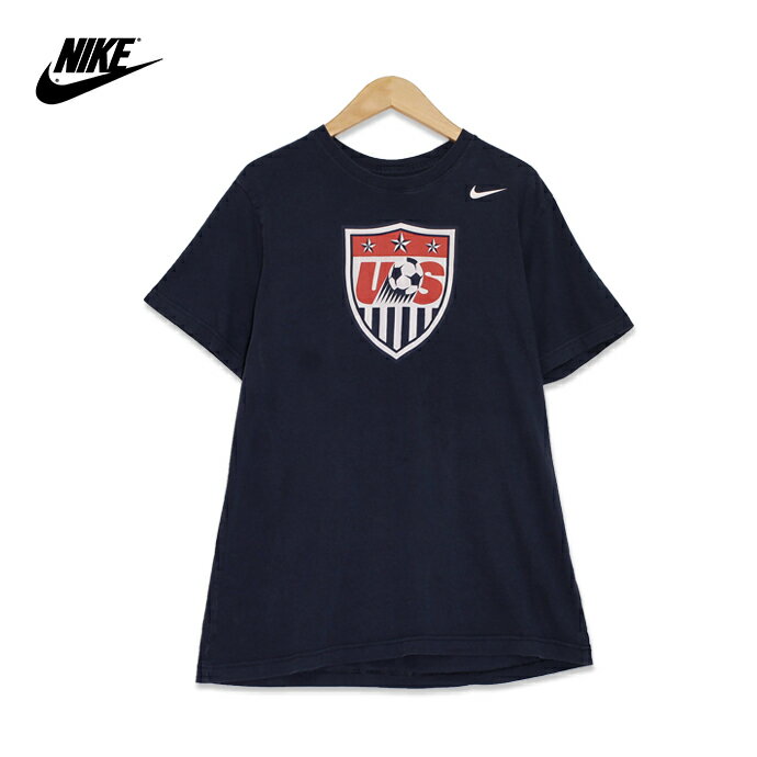Nike ナイキ サッカー アメリカ代表 旧ロゴ プリント 半袖Tシャツ メンズXLサイズ ネイビー ユーズド 古着 t200625-69