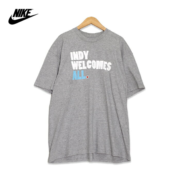 Nike ナイキ INDY WELCOMES ALL. プリント 半袖Tシャツ メンズXLサイズ ライトグレー ユーズド 古着 t200625-71